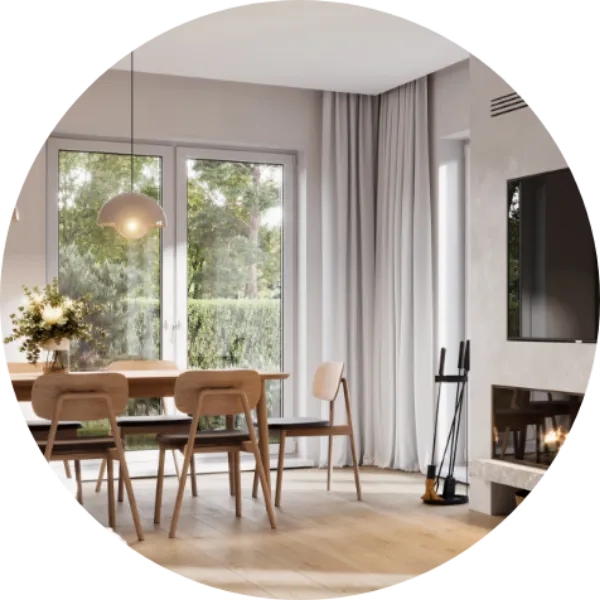 空き家の場合は、360°パノラマで撮影した写真にソファーやテーブルなどの家具やインテリアをCGでコーディネートし、物件を魅力的に演出してホームページに掲載します。